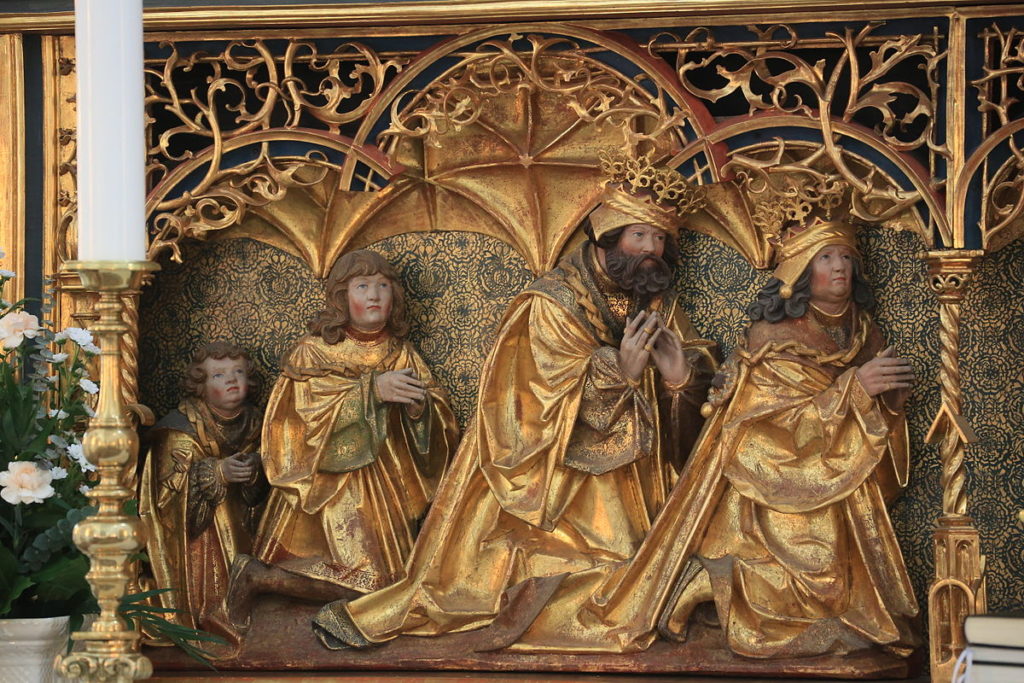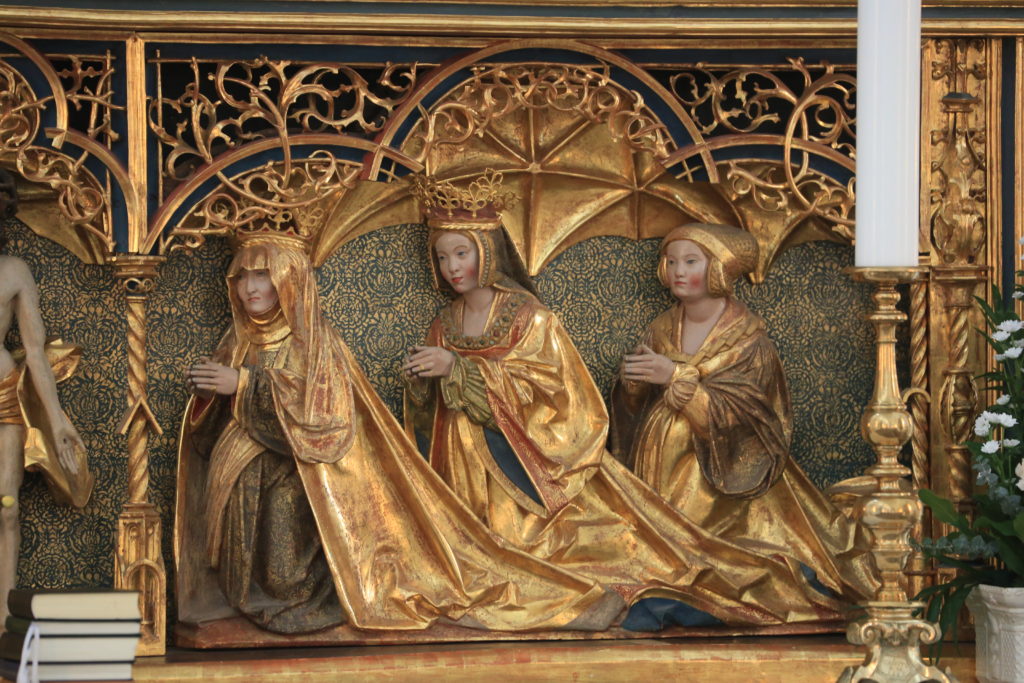 I dag er den smukke, katolske altertavle, som dronning Christine fik skåret til Gråbrødre Klosterkirke sat op i Odense Domkirke. Husk, at du kan se giveren og hendes familie nederst på altertavlen, hvis ufattelig mange, smukt skårne træfigurer alle er forskellige. En af mine gode venner siger: “Altertavlen må klart vise datidens mode”. Hvad tænker du? Selv er jeg imponeret over træskærernes kreativitet, dygtighed og ikke mindst, hvor velbevaret altertavlen er. Selv om den ikke er lavet til Skt. Knuds Kirke, så passer den nu meget flot ind i den. Tænker du måske over, at kirken er protestantisk og altertavlen katolsk?